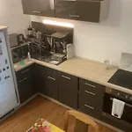 Eine voll ausgestattete Küchenzeile mit einem Toaster und einem Herd ist im Apartment Home Mainz 27 verfügbar. Diese Unterkünfte befindet sich in nur 1 km Entfernung vom Bahnhof Haupt Mainz gelegen.